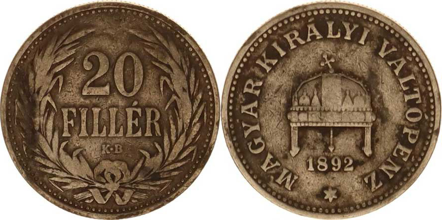 František Josef I.(1848-1918), 20 Fillér 1892 KB