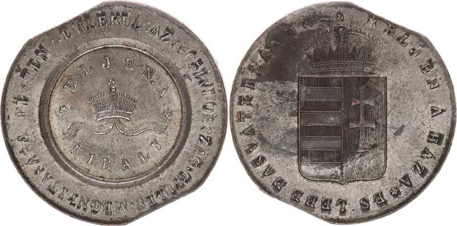 Uhry - Upomínka na zahájení Národního shromáždění v Pešti r. 1865 , Uherský znak / Uherská koruna postř. bronz 40 mm, kraj. stř.