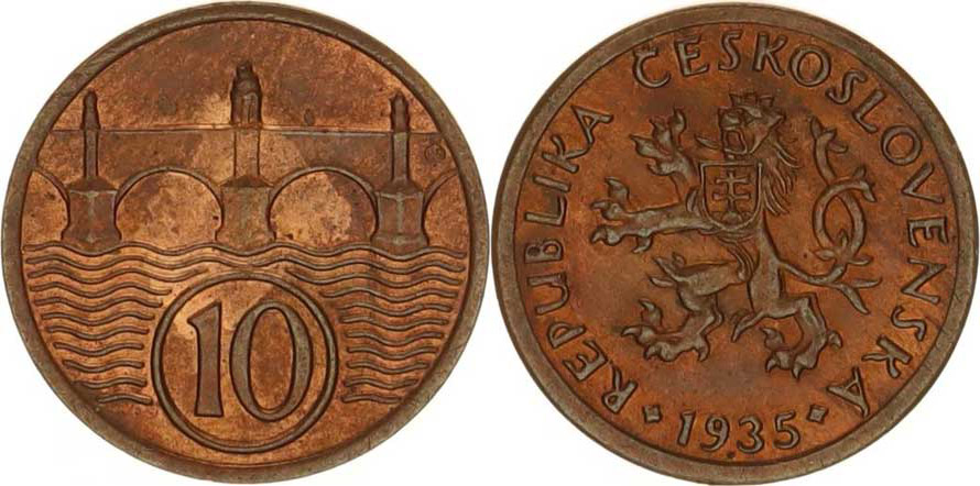 Údobí let 1918-1938, 10 hal. 1935 "R" "sbírkový"