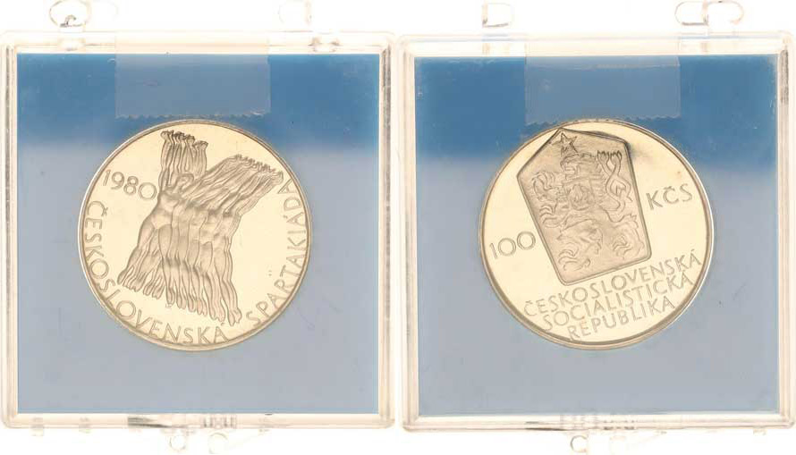 Údobí let 1953-1993, 100 Kčs 1980 - Spartakiáda orig. etue, schází plomba