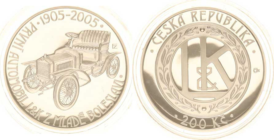 Česká republika (1993-), 200 Kč 2005 - automobil Laurin a Klement orig.etue, kap