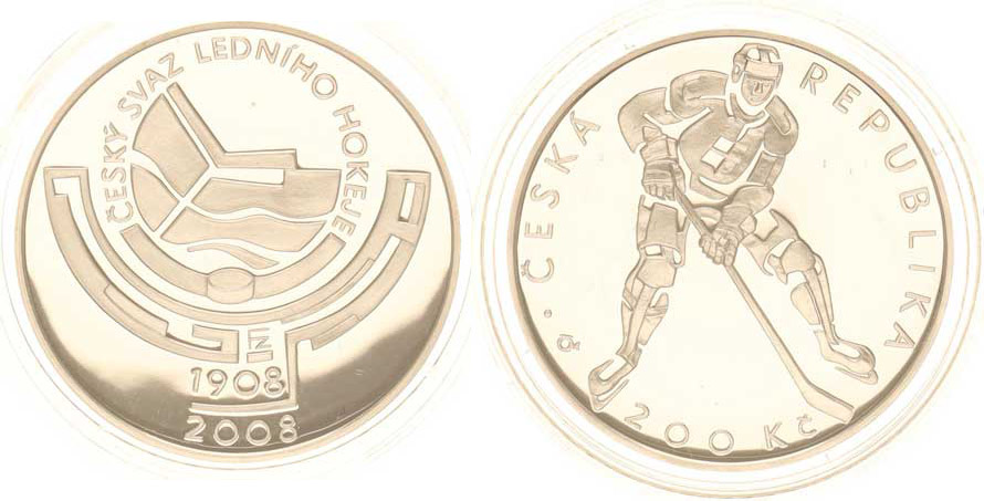 Česká republika (1993-), 200 Kč 2008 - Český svaz ledního hokeje orig. etue, kapsle
