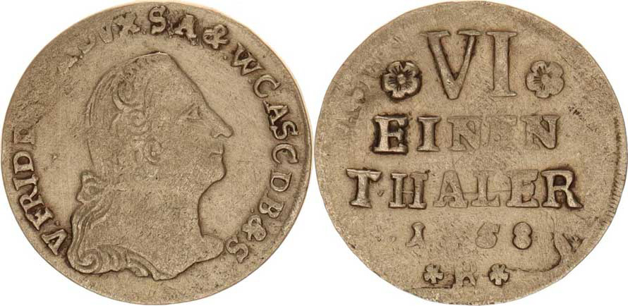 Anhalt-Bernburg, Viktor II. Friedrich (1721-1765), 1/6 tolaru 1758 R, mělčí ražba