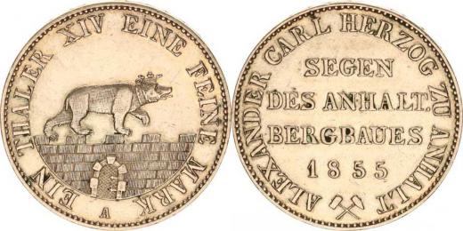 Anhalt-Bernburg, Alexander Carl (1834-1863), Tolar výtěžkový 1855 A KM 84 22,307 g