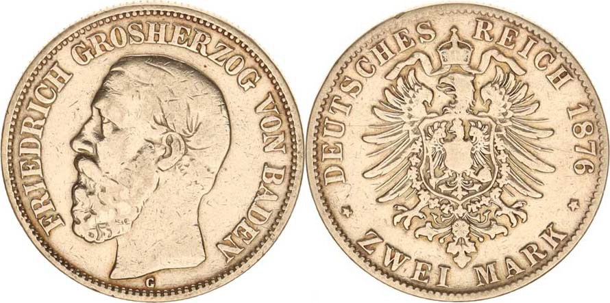 Baden, Friedrich I. (1852-56-1907), 2 Mark 1876 G "R" KM 265