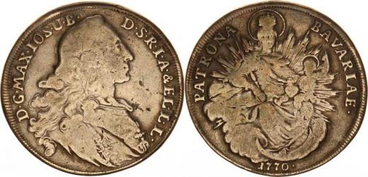 Bavorsko, Maximilian III.Joseph (1745-1777), Tolar 1770 KM 519,1, na hr. stopa po oušku