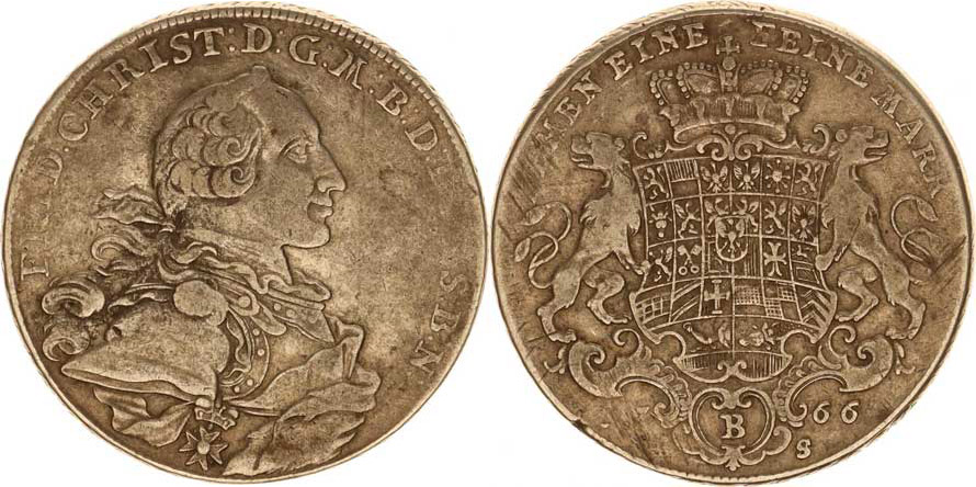 Brandenburg - Bayreuth, Fried.Christian (1763-1769), Tolar 1766 B/ES KM 252 27,899 g, mír. nedor. o