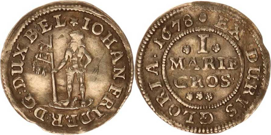 Brunsw-Luneb-Calenberg, Johann Friedrich (1665-1679), I Mariengroschen 1678 - divý muž KM 141, mír.