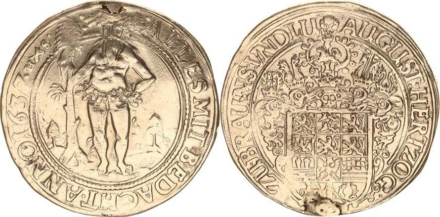 Brunswick - Wolfenbüttel, August II. (1634-1666), Tolar 1638 HS , divý muž / erb Dav. 6337; KM 393,