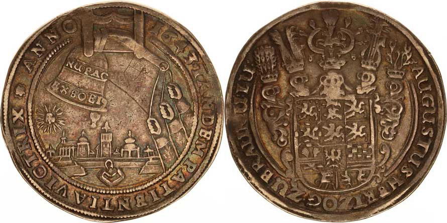 Brunswick - Wolfenbüttel, August II. (1634-1666), Tolar 1643 - 7 Glockentaler (typ: erb / tři ruce