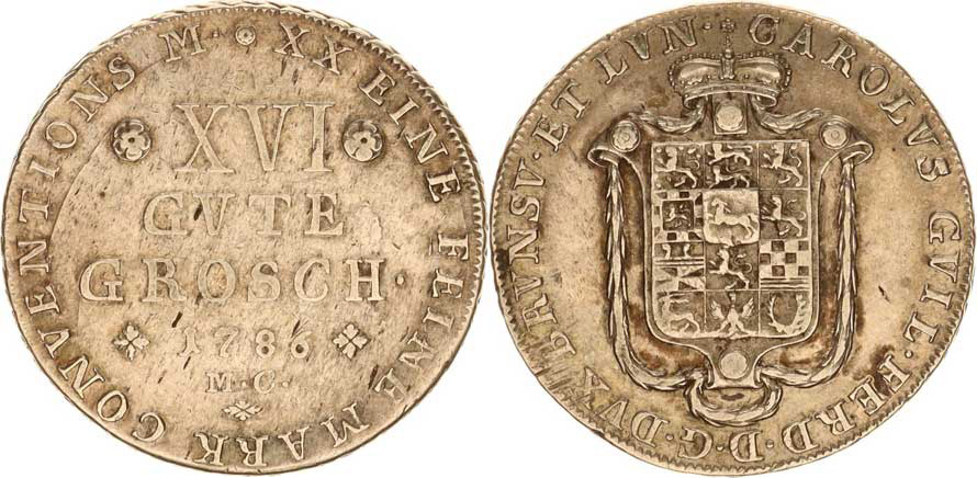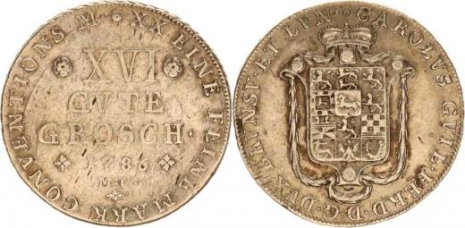 Brunswick - Wolfenbüttel, Karl Wilhelm Ferdinand (1780-1806), XVI Gute Groschen 1786 MC KM 1020, té