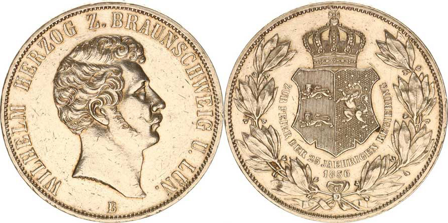 Brunswick - Wolfenbüttel, Wilhelm (1831-1884), 2 Tolar 1856 B - 25. výr. vlády KM 1149 (raženo 1745