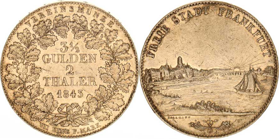 Frankfurt, 2 Tolar = 3 1/2 Gulden 1843, pohled na přístav KM 326 "R"