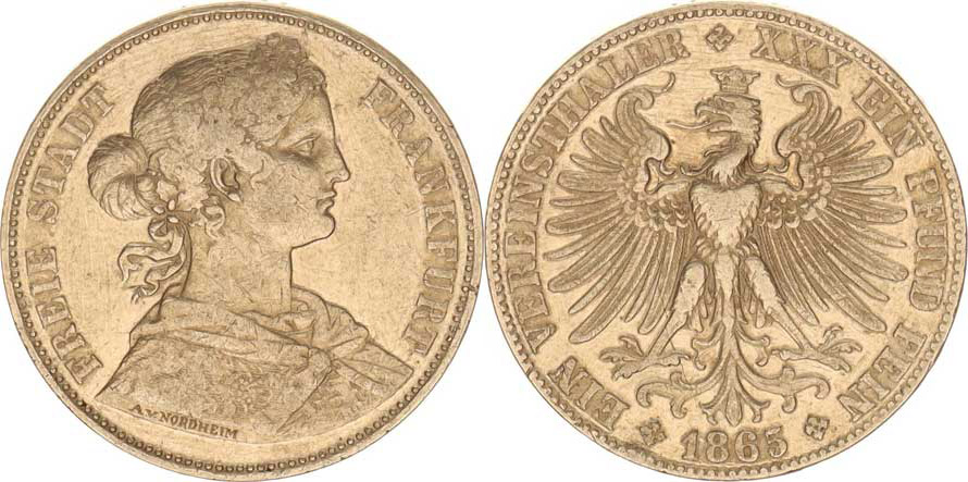 Frankfurt, Tolar spolkový 1865 KM 370, hlazen v ploše