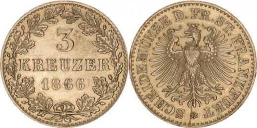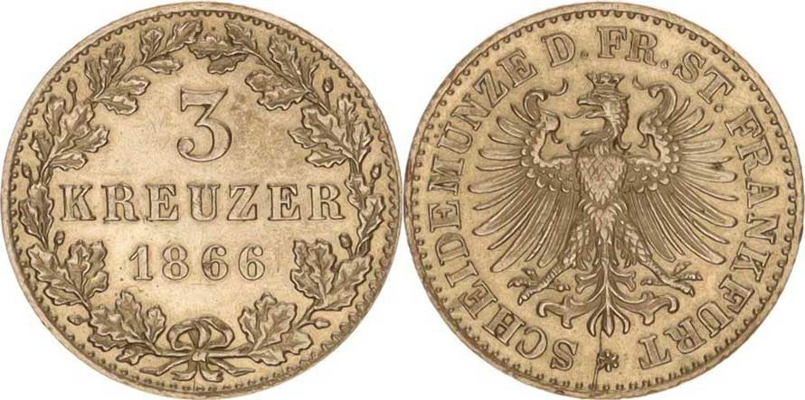 Frankfurt, 6 Kreuzer 1853 - pohled na město KM 350