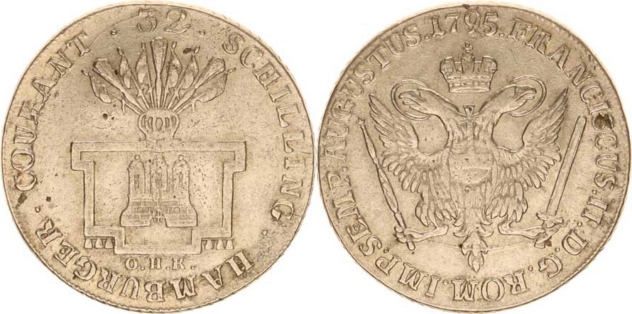 Hamburg, 32 Schilling 1795 OHK KM 229, mělčí ražba, tém.