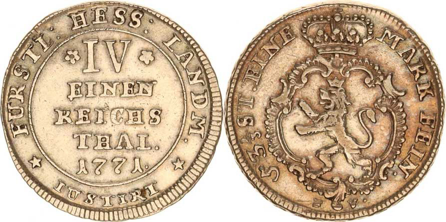 Hesse-Cassel, Friedrich II. (1760-1785), 1/4 tolaru 1771 FU KM 491, tém.