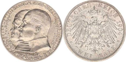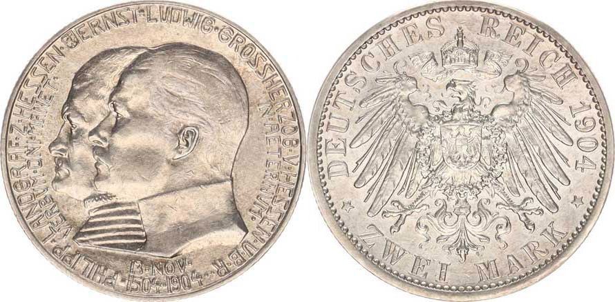 Hesse-Darmstadt, Ernst Ludwig (1892-1918), 2 Mark 1904 A - 400. výročí narození Phillippa KM 372