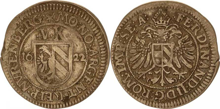 Norimberk - město, 5 Kreuzer 1622 zn. hvězdička KM 58 "RR", tém.