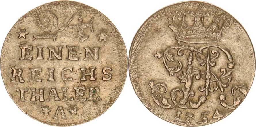 Prusko, Friedrich II.(1740-1786), 1/24 tolaru 1754 A KM 263, tém.