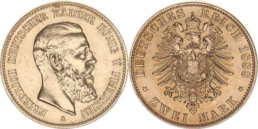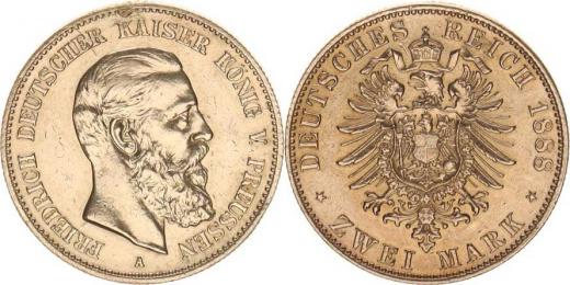 Prusko, Friedrich III.(1888), 2 Mark 1888 A Y. 116; KM 510, v av. stopa