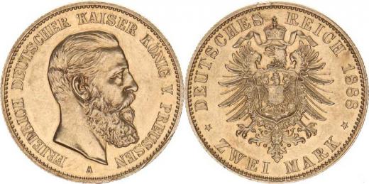 Prusko, Friedrich III.(1888), 2 Mark 1888 A Y. 116; KM 510, nep. hr.