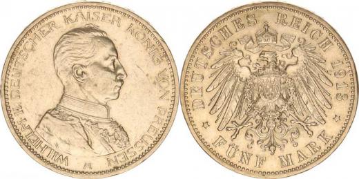 Prusko, Wilhelm II. (1888-1918), 5 Mark 1913 A - 25. výročí vlády KM 536