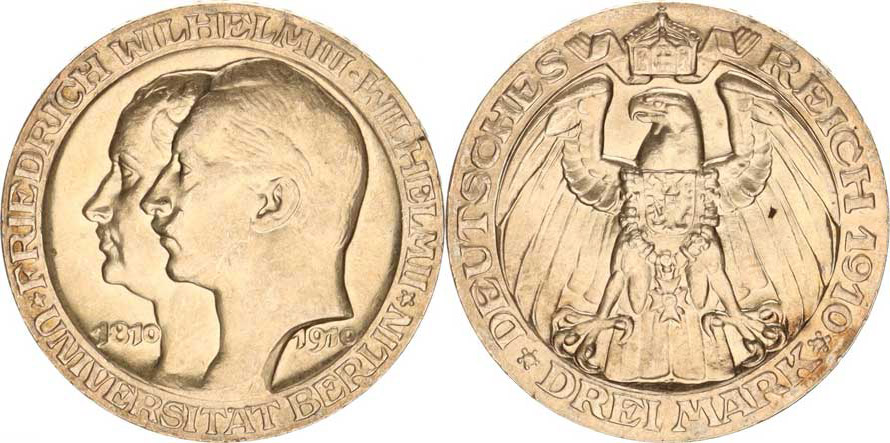 Prusko, Wilhelm II. (1888-1918), 3 Mark 1910 A - Univerzita Berlin KM 530 "R"