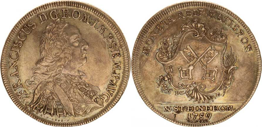 Regensburg - město, Tolar 1759 ICB - s tit. Fr. Lotrinského Cr. 45a "R" 28,0