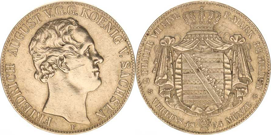 Sasko, Friedrich August II. (1836-1854), 2 Tolar spolkový 1854 F Cr. 238a 36,963 g, rys.
