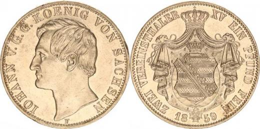 Sasko, Johann (1854-1873), 2 Tolar spolkový 1859 F KM 1195 36,978 g