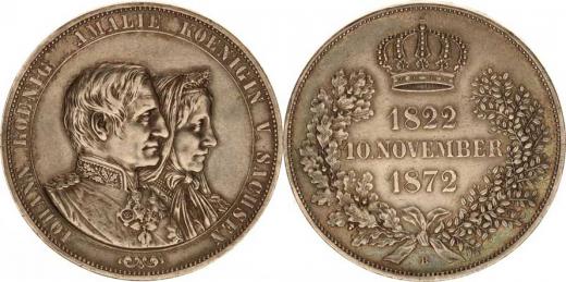 Sasko, Johann (1854-1873), 2 Tolar 1872 B - Zlatá svatba KM 279a 37,029 g, patina