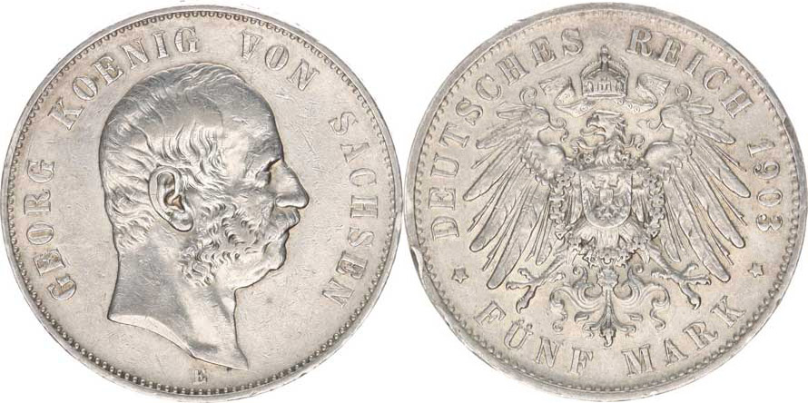 Sasko, Georg (1902-1904), 5 Mark 1903 E KM 1258, rys., hr.