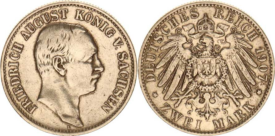 Sasko, Friedrich August III. (1904-1918), 2 Mark 1907 E KM 1263