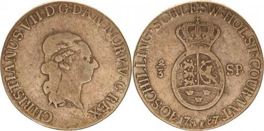 Schleswig-Holstein, Christian VII. (1784-1808), 40 Schilling (2/3 Daler Specie) 1787 B MF KM 135 "R