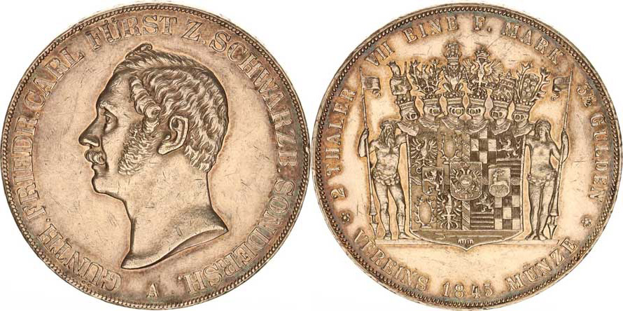 Schwarzburg-Sonderhausen, Günther Friedrich Carl II. (1835-1880), 2 Tolar (3 1/2 Gulden) 1845 A KM