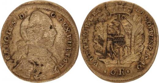 Württemberg, Carolus Eugen (1744-1793), 6 Kreuzer 1749 KM 385