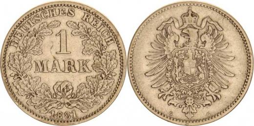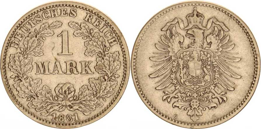 Německo, drobné ražby císařství, 1 Mark 1881 G, dr. škr.