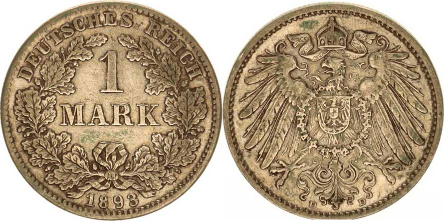 Německo, drobné ražby císařství, 1 Mark 1893 D