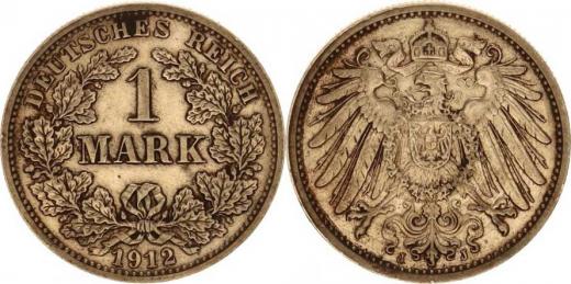 Německo, drobné ražby císařství, 1 Mark 1912 J "R"
