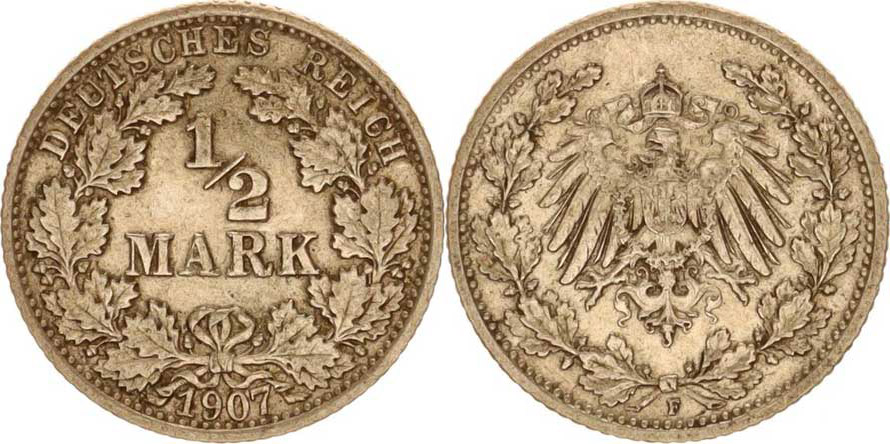 Německo, drobné ražby císařství, 1/2 Mark 1907 F
