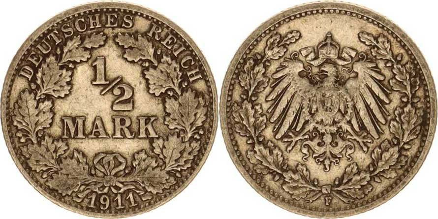 Německo, drobné ražby císařství, 1/2 Mark 1911 F