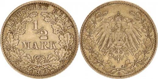 Německo, drobné ražby císařství, 1/2 Mark 1913 J