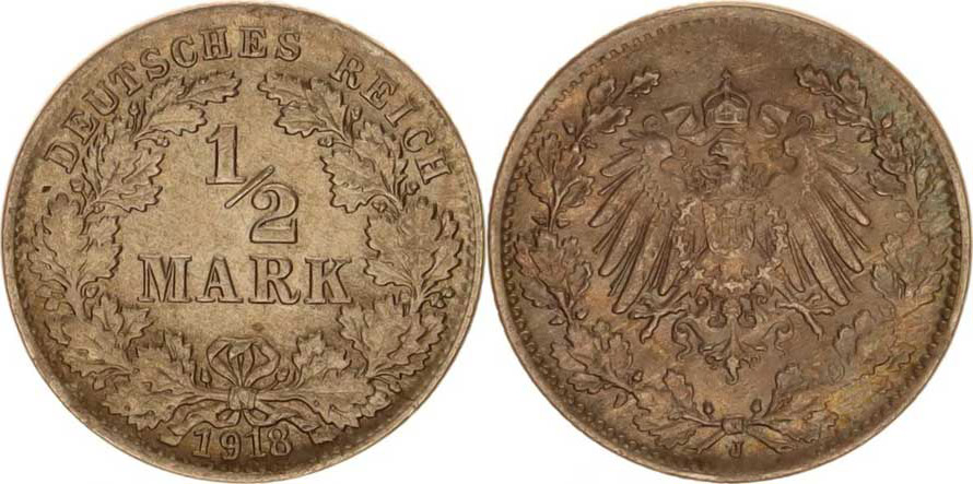 Německo, drobné ražby císařství, 1/2 Mark 1918 J