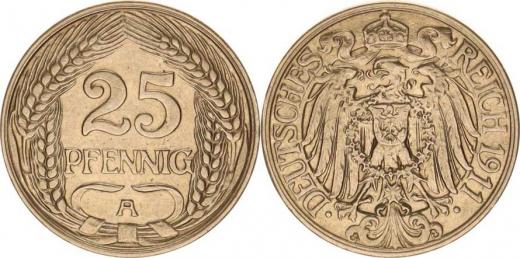 Německo, drobné ražby císařství, 25 Pfennig 1911 A KM 18