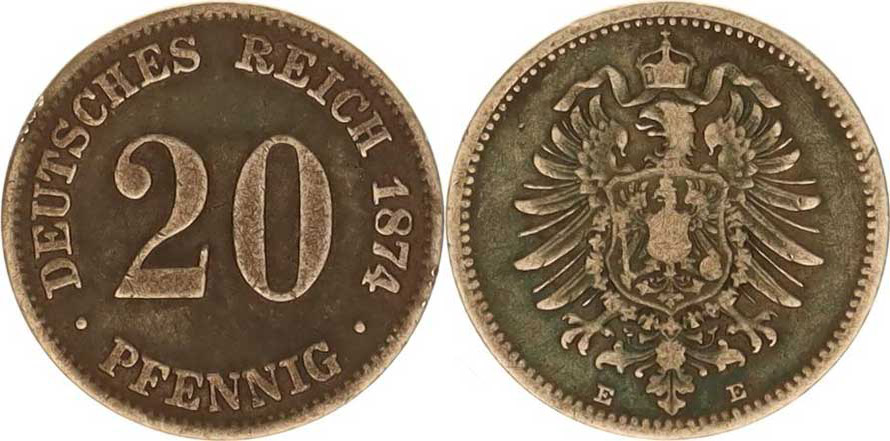 Německo, drobné ražby císařství, 20 Pfennig 1874 E "R"