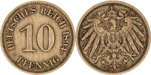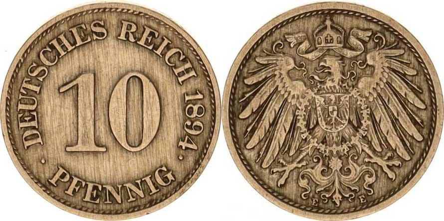 10 Pfennig 1894 E "RR", nep. rys., tém.