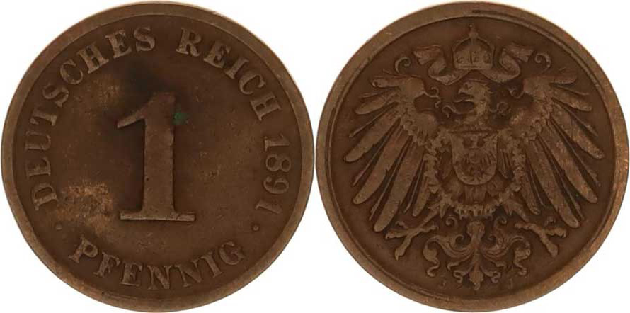 Německo, drobné ražby císařství, 1 Pfennig 1891 J "R"