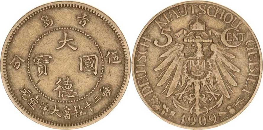 Německo, okupace Kiau Chau (poloostrov Východní Číny), 5 Cents 1909 Y. 1 "R"