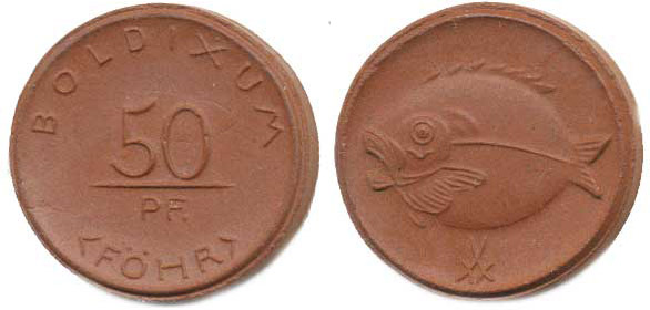 Německo, Nouzová platidla, Boldixum na ostrově Föhr - 50 Pf. b.l. / ryba míšeň. hnědý p